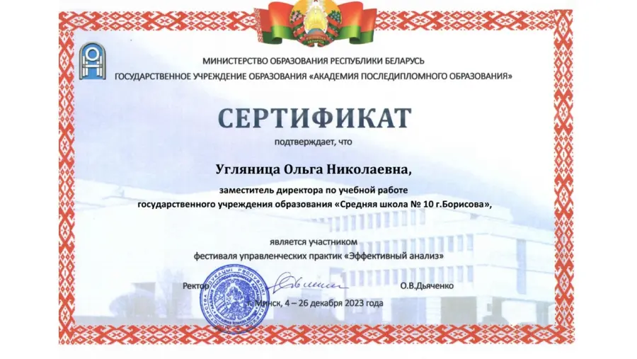 21 декабря 2023 года в Академии последипломного образования на платформе дистанционного обучения состоялось итоговое мероприятие фестиваля управленческих практик "Эффективный анализ", в котором приняли участие руководящие работники учреэжений образоваи Беларуси, России, Узбекистана.