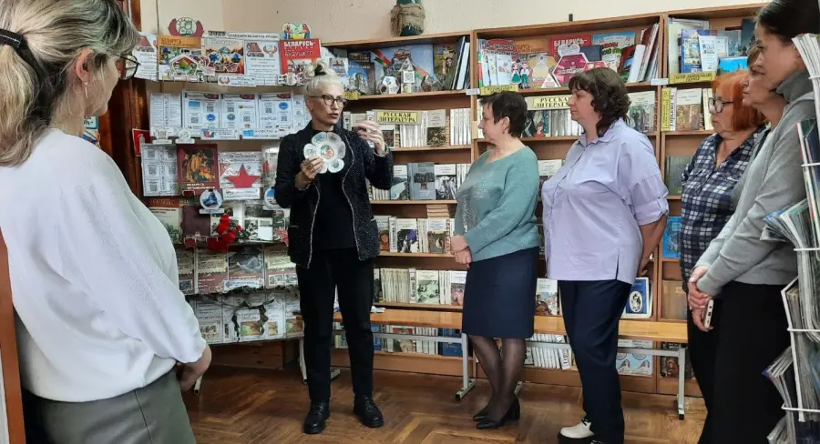 Заведующий школьной библиотеки «Читай-Град», Яунишкене Светлана Алексеевна, познакомила педагогов с различными формами педагогических технологий, креативными методами и приёмами учебной и воспитательной работы, современными цифровыми технологиями, методическим обеспечением педагогов. Так же были представлены государственные образовательные, информационно-правовые интернет-ресурсы, образовательные сайты в помощь педагогам и классным руководителям. Участники встречи получили в подарок печатную продукцию, буклеты, памятки по учебной и воспитательной работе, о музеях Республики Беларусь, о Годе благоустройстве, о государственных символах нашего государства, о выборах, о геноциде белорусского народа в годы Великой Отечественной войны, о городе Борисове.