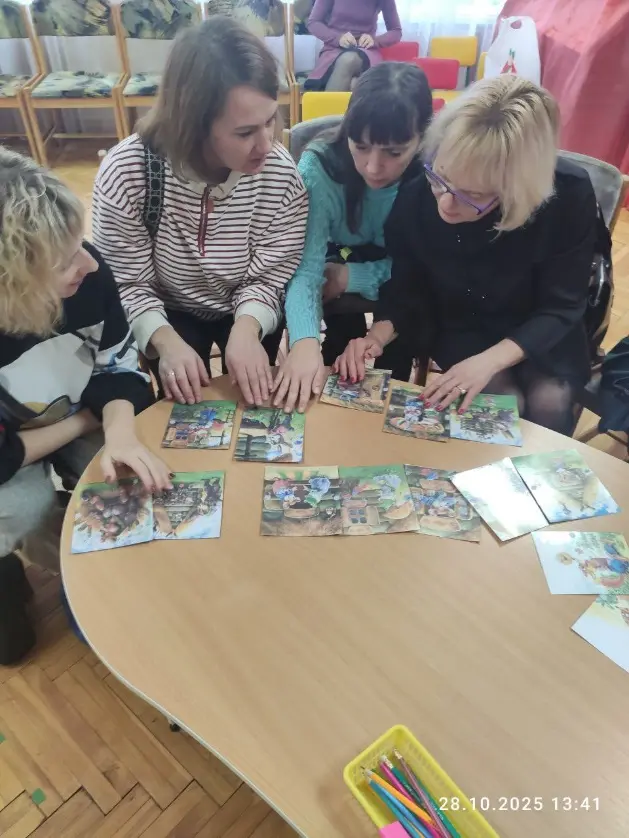 Так же Наталья Витальевна познакомила присутствующих с технологией визуализации: таймлайн. Во время работы в группах педагоги самостоятельно составили таймлайны для облегчения пересказывания знакомых детям сказок.