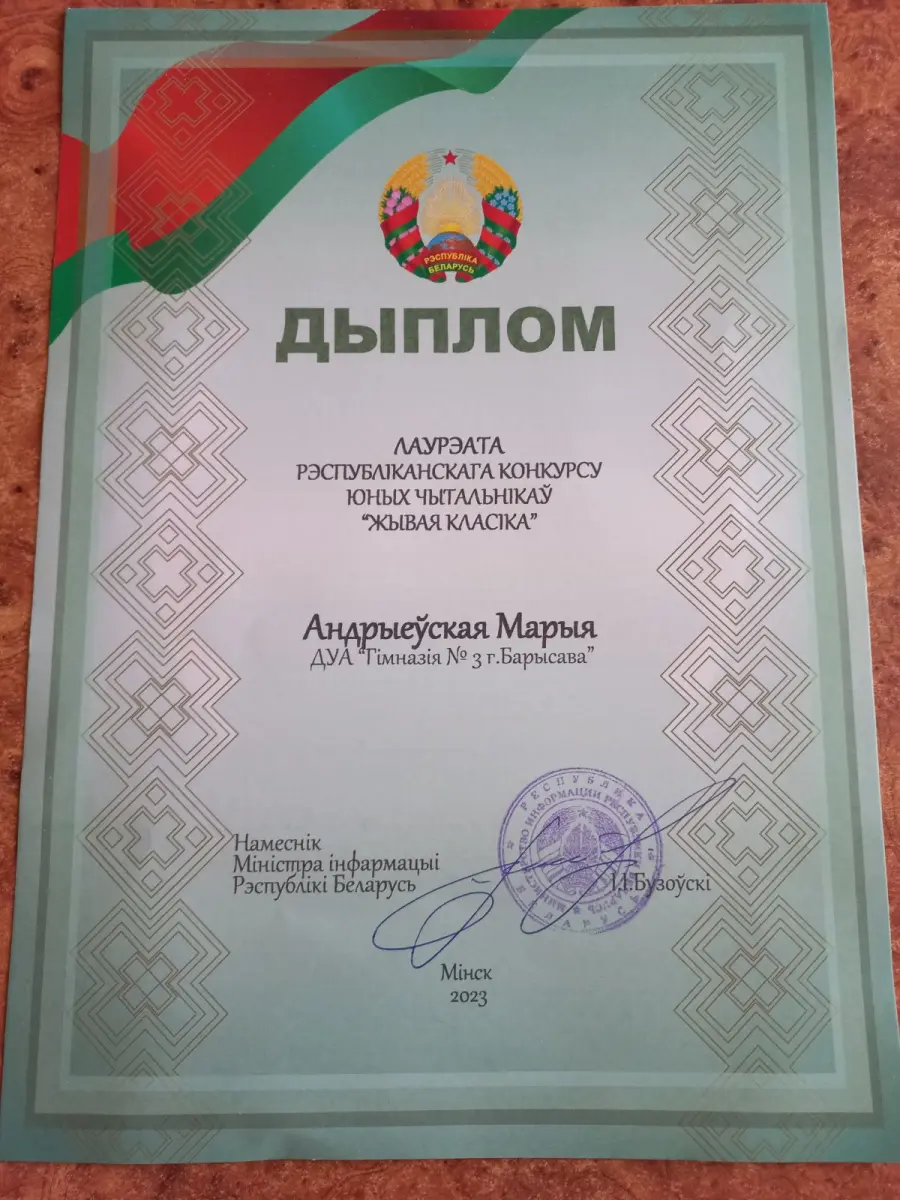 Марыя Андрыеўская адзначана дыпломам лаўрэата рэспубліканскага конкурсу