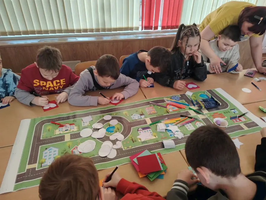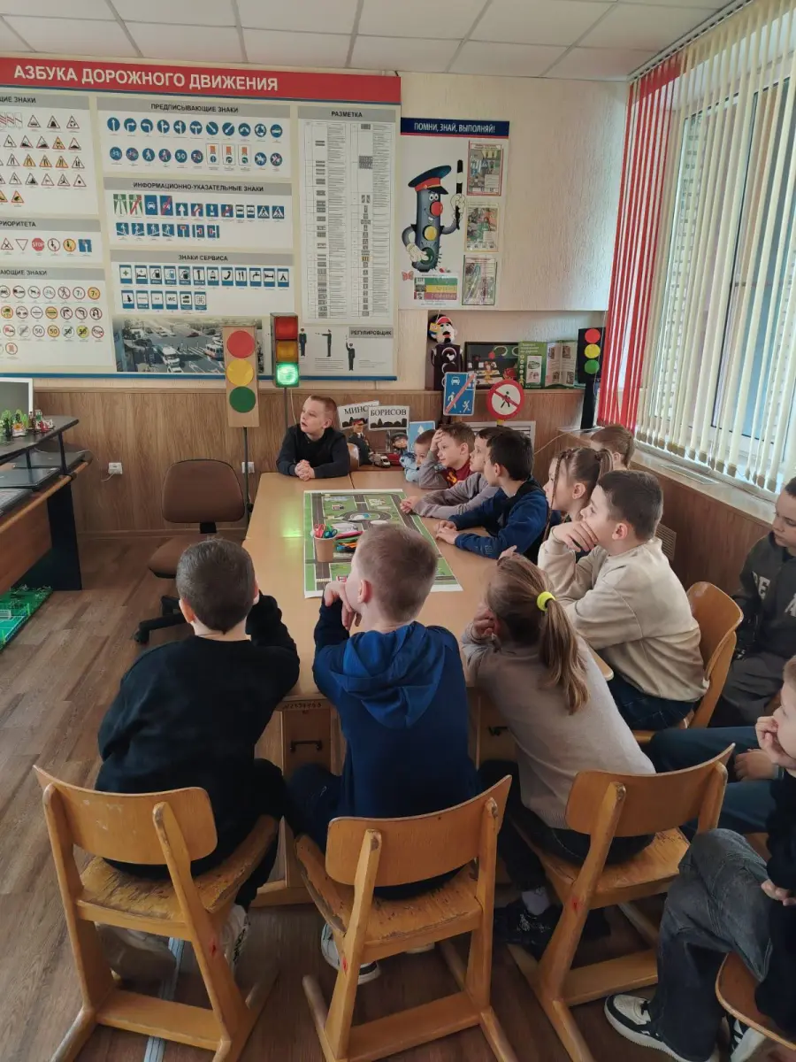 18.04.2026 на базе районного ресурсного центра "СВЕТОФОР" Государственного учреждения образования "Средняя школа № 3 г. Борисова" состоялся мастер-класс "Мастерская дорожных знаков" для учащихся начальной школы.