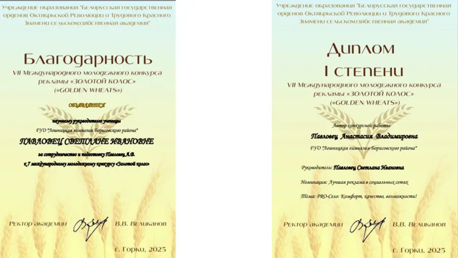 В апреле-мае 2025 года состоялся 7-й Международный молодежный конкурс "Золотой колос", который ежегодно объединяет школьников, учащихся, студентов из разных регионов Беларуси и зарубежья, стремящихся проявить себя в сфере рекламы, социальных коммуникаций и креативных проектов.