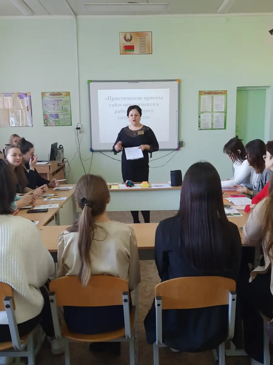 21 апреля 2023 года на базе ГУО "Средняя школа № 10 г. Борисова" состоялось занятие в Школе молодого специалиста "Диалог" (2 год) по теме "Практические приемы тайм - менеджмента в работе молодого педагога". Руководством школы и опытными педагогами проведен мастер - класс для молодых педагогов Борисовского района по использованию практических приемов тайм - менеджмента в работе учителя.