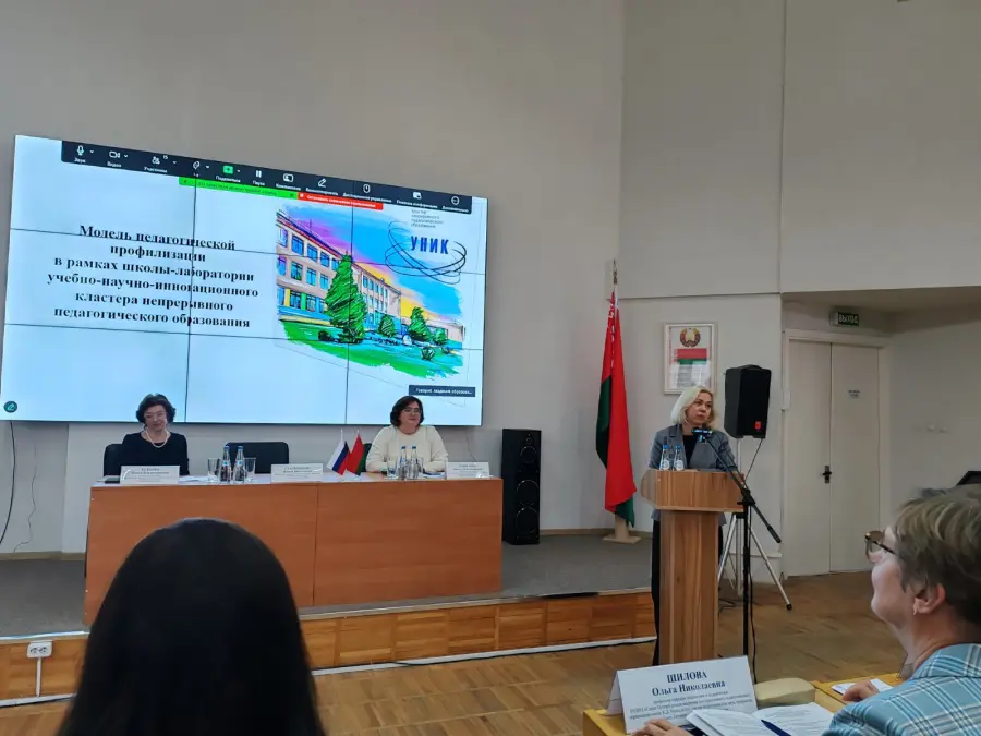 С докладом на пленарном заседании выступила Юлия Владимировна Саматыго, директор ГУО «Лошницкая гимназия Борисовского района». Она представила модель педагогической профилизации, реализуемую в рамках Школы-лаборатории учебно-научно-инновационного кластера непрерывного педагогического образования. Модель демонстрирует эффективное сочетание научного подхода, практико-ориентированных форм и индивидуальных траекторий развития педагогов.