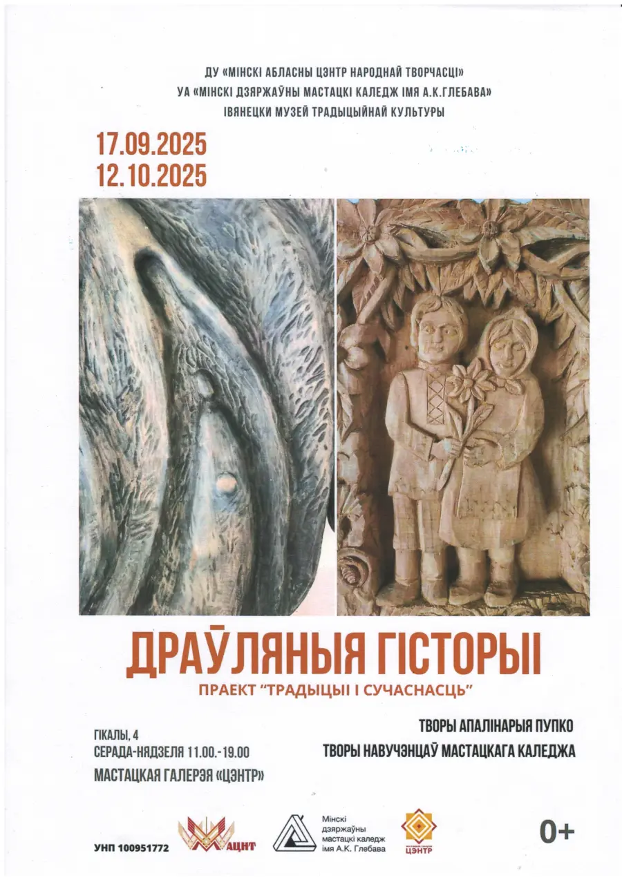 В период с 17 сентября по 12 октября 2025 г. в выставочном зале галереи "Центр" откроется выставка "Традыцыi i сучаснасць: драўляныя гiсторыi", на которой экспонируется художественная резьба по дереву. Выставочный зал галерея "Центр" расположен по адресу: г. Минска, ул. Гикало, 4.