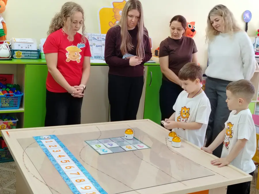 В ходе занятия ребята составляли алгоритмы, чтобы робот нарисовал цифры и собрал «математические сокровища», решали простые задачи на сложение и вычитание, используя «робокалькулятор»; работали в командах, учились слушать друг друга, договариваться и делиться идеями; закрепили математические понятия в увлекательной игровой форме. Воспитанники не просто «управляли роботом» — они думали, планировали, проверяли гипотезы и исправляли ошибки — как настоящие юные инженеры.