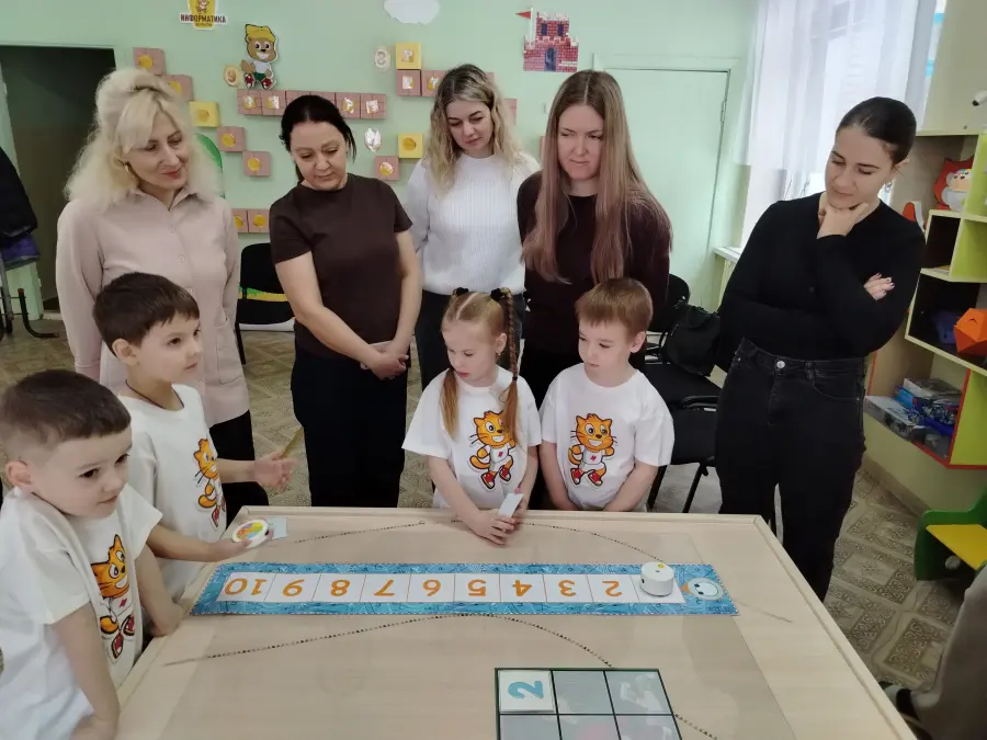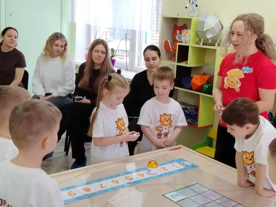 Воспитанники старших групп продемонстрировали присутсвующим навыки программирования робота Мататалаб — умного помощника, который умеет двигаться, поворачивать, считать и выполнять команды!