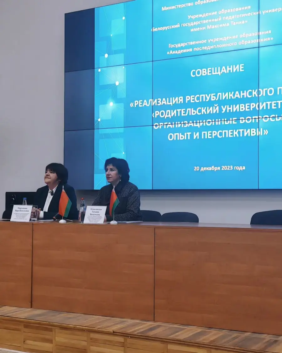 20 декабря 2023 года в ГУО "Академия последипломного образования" прошло совещание Министерства образования Республики Беларусь "Реализация Республиканского проекта "Родительский университет": организационные вопросы, опыт и перспективы".
