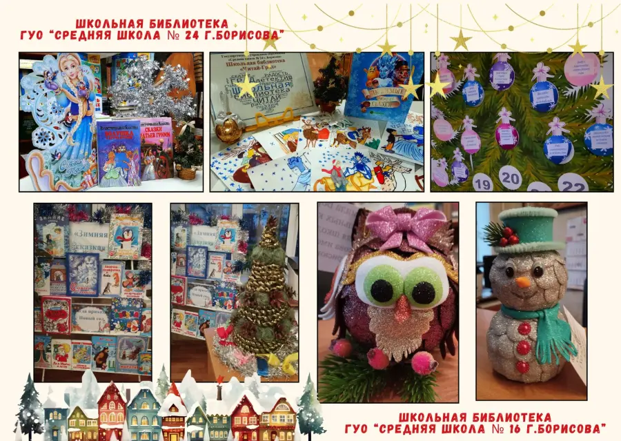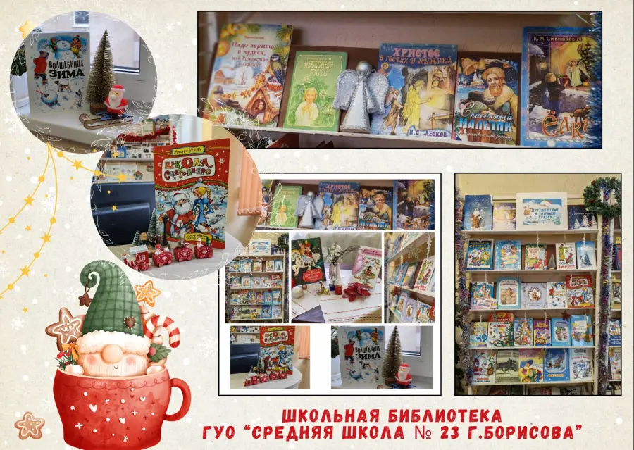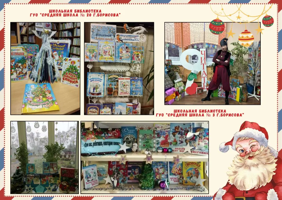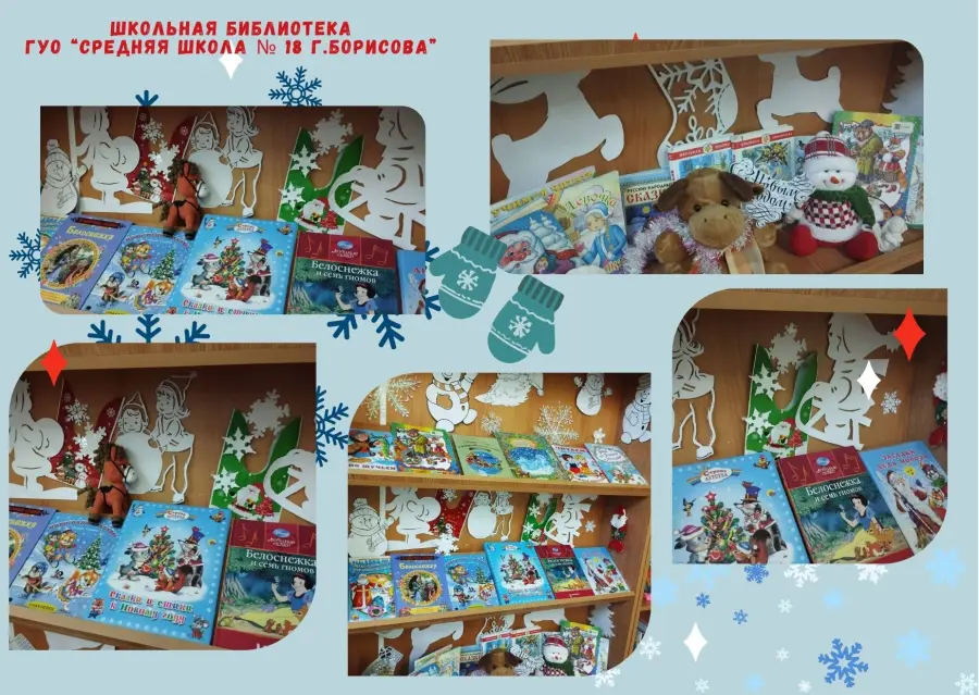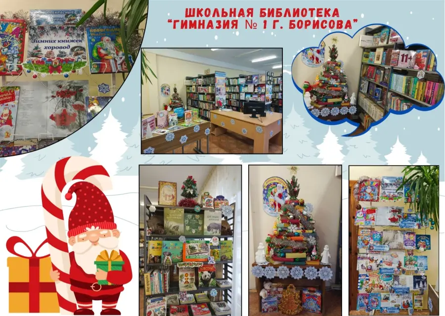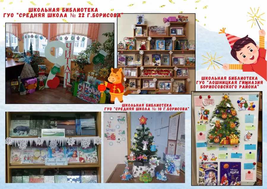Приближается Новый год… Повсюду царит новогоднее настроение. Интересно и креативно готовятся к праздникам и школьные библиотеки города Борисова. Создаются праздничные выставки, инсталляции, фотозоны. Всё вокруг сверкает, искрится, радует глаз.