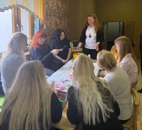 В практической части педагоги поработали на интерактивных тематических площадках. Участники смогли посетить мастер-класс по изготовлению объёмных цветов, творческую мастерскую по созданию шляпок как атрибута для танцев, а также арт-мастерскую по изготовлению мини-театра из брелока.