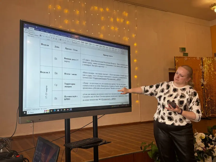 Представитель волонтёрского клуба «СЛОН» БГУКИ М. Ю. Касперович поделился опытом взаимодействия семьи и школы через проект «История вдохновения». Презентация и видеоматериалы клуба наглядно продемонстрировали эффективные модели вовлечения учащихся в социально значимые инициативы, а также механизмы преемственности между школьным и вузовским волонтёрством.