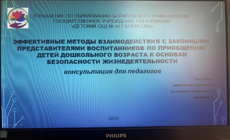 11 марта 2026 года на базе Ресурсного центра по приобщению детей дошкольного возраста к основам безопасности жизнедеятельности ГУО "Детский сад № 50 г. Борисова" состоялся вебинар для воспитателей дошкольного образования на тему "Эффективные методы взаимодействия с законными представителями воспитанников по приобщению детей дошкольного возраста к основам безопасности жизнедеятельности".