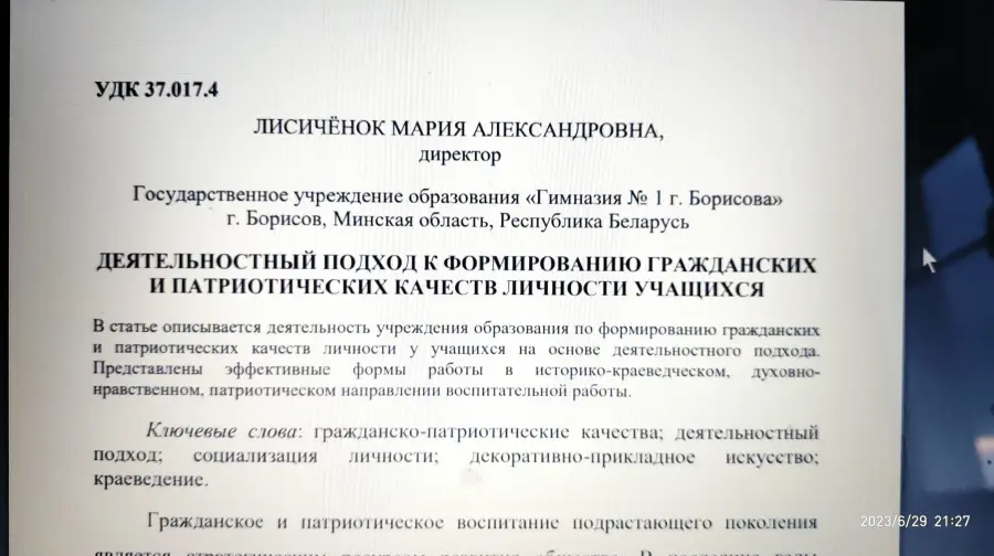 По материалам VІ Международного научно-практического семинара «Профессиональные компетенции современного руководителя как фактор развития образовательной сферы» (20.04.2023). издан сборник, в котором можно познакомиться с выступлениями директора ГУО "Гимназия № 1 г.Борисова" Лисиченок Марии Александровны, директора ГУО "Лошницкая гимназия Борисовского района" Саматыго Юлии Владимировны, заместителя директора по учебной работе ГУО "Средняя школа № 10 г.Борисова" Угляницы Ольги Николаевны.