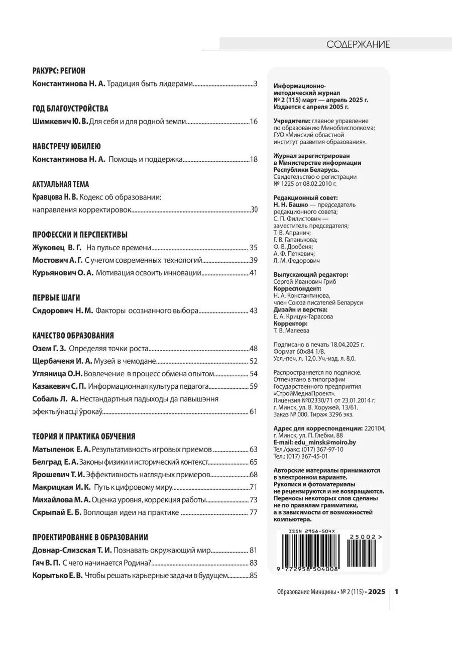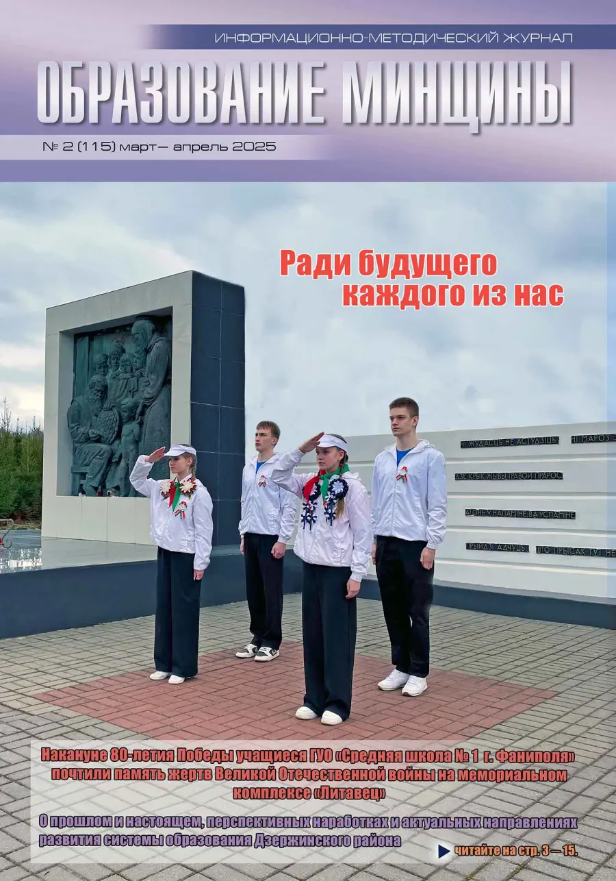Информационно-методический журнал "Образование Минщины" подготовил ряд статей на актуальные темы. В № 2 за 2025 год можно познакомиться с публикациями наших педагогов: Угляница О.Н., заместитель директора по учебной работе ГУО "Средняя школа №10 г.Борисова" и Макрицкая И.К., учитель английского языка ГУО "Гимназия №1 г.Борисова".
