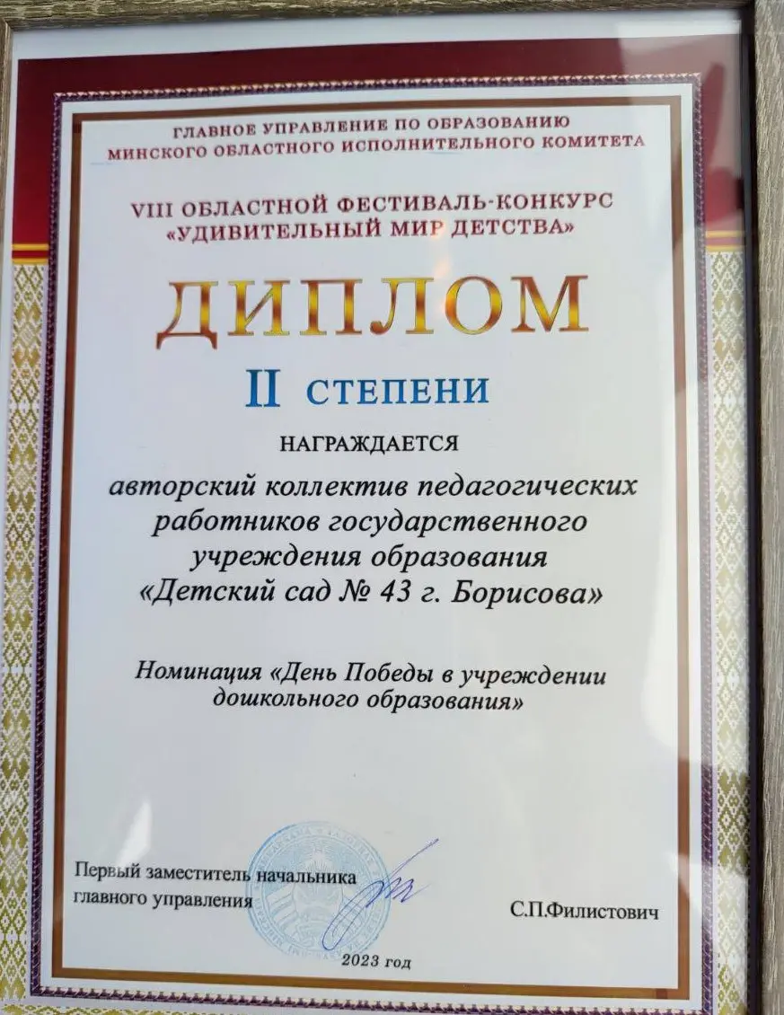 Дилома 2 степени удостоен творческий коллектив ГУО "Детский сад № 43 г.Борисова" .
