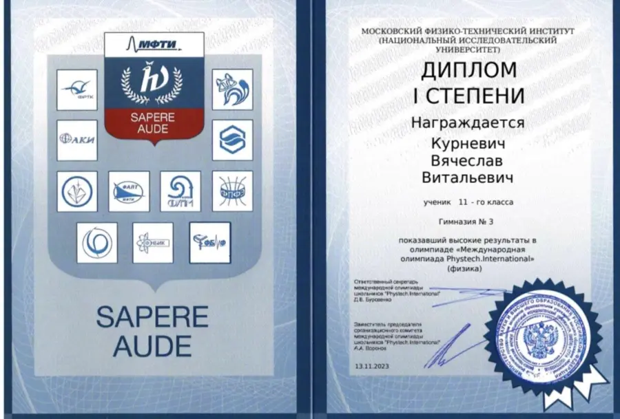 Учащийся 11 класса ГУО "Гимназия № 3 г.Борисова" Вячеслав Курневич успешно выполнил олмиадные задания и получил высокий результат.