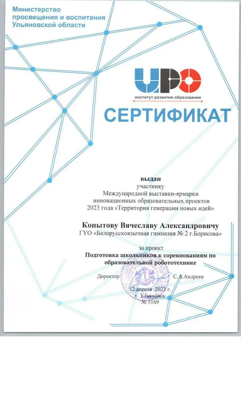 К участию в выставк-ярмарке он представил проект "Подготовка школьников к соревнованиям по образовательной робототехнике"