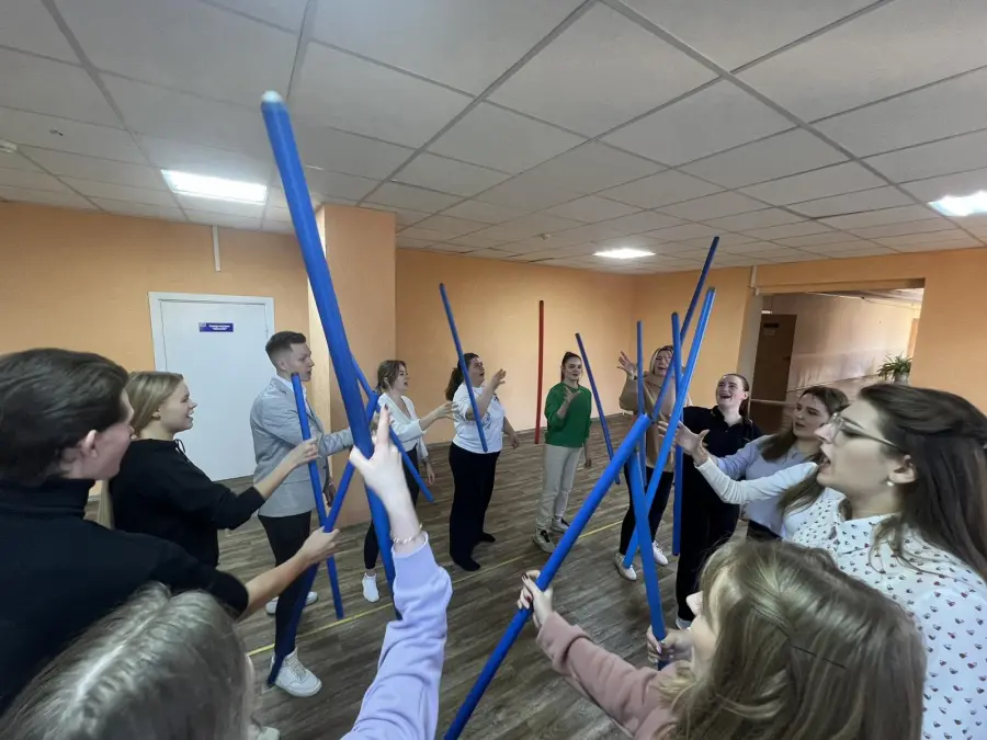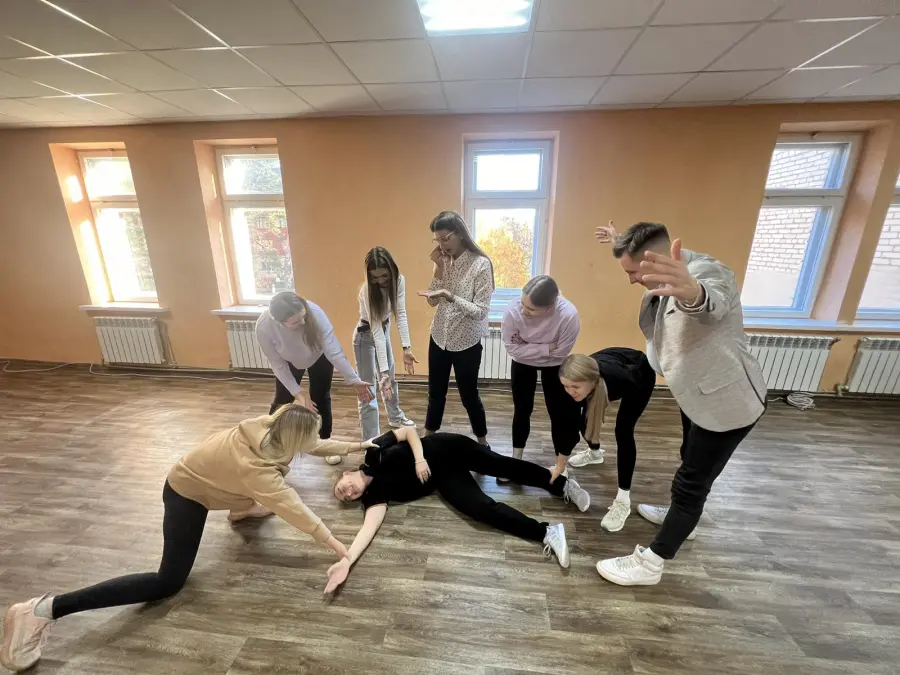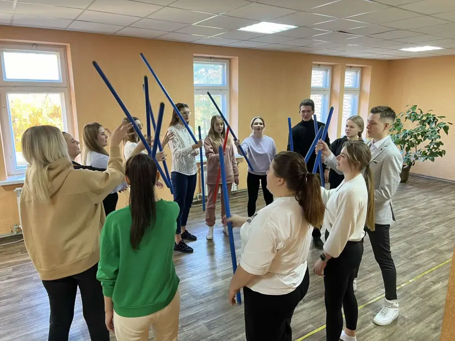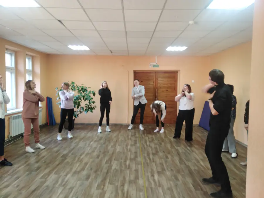 На первом занятии в 2023/2024 учебном году педагоги Агентства молодёжных инициатив постигали азы театрального мастерства, участвовали в тренингах по сценической речи. Делали различные упражнения на дыхание, артикуляцию, постановку голоса, дикцию с Шикуновым Павлом Сергеевичем, студентом 4-го курса ГУ «Белорусский государственный университет культуры и искусств».