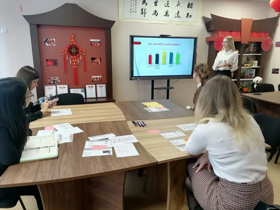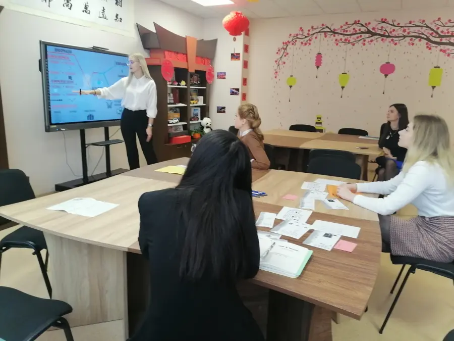 Заместитель директора ГУО «Средняя школа №25 г. Борисова» Демченкова Е.П. рассказала о работе ресурсного центра белорусско-китайской дружбы, акцентировала внимание присутствующих на основных аспектах деятельности центра. Руководитель центра Воронко Е.Ю. поделилась опытом использования инструментов визуализации на уроках и факультативных занятиях по китайскому языку.Ибрагимова Т.В., учитель английского языка, провела мастер-класс «Смарт-мастерская как эффективный способ интенсификации учебного процесса на уроках иностранного языка». Учителя китайского языка Воронко Е.Ю., Ху Минцзюнь разработали и продемонстрировали интерактивные задания и упражнения по китайскому языку для своих коллег.