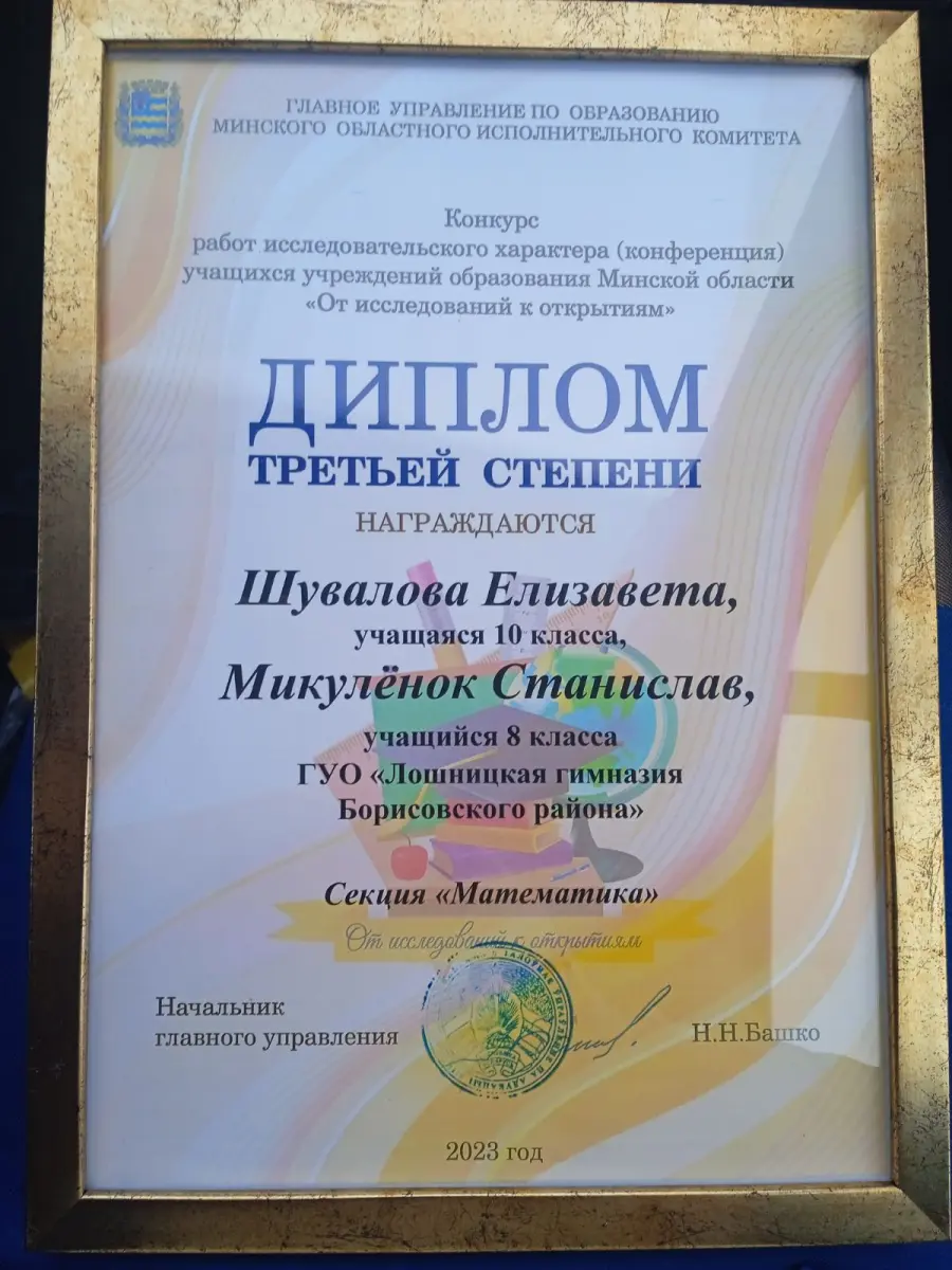11 Математика Шувалова Елизавета, Микулёнок Станислав, ГУО «Лошницкая гимназия Борисовского района», - Диплом 3 степени
