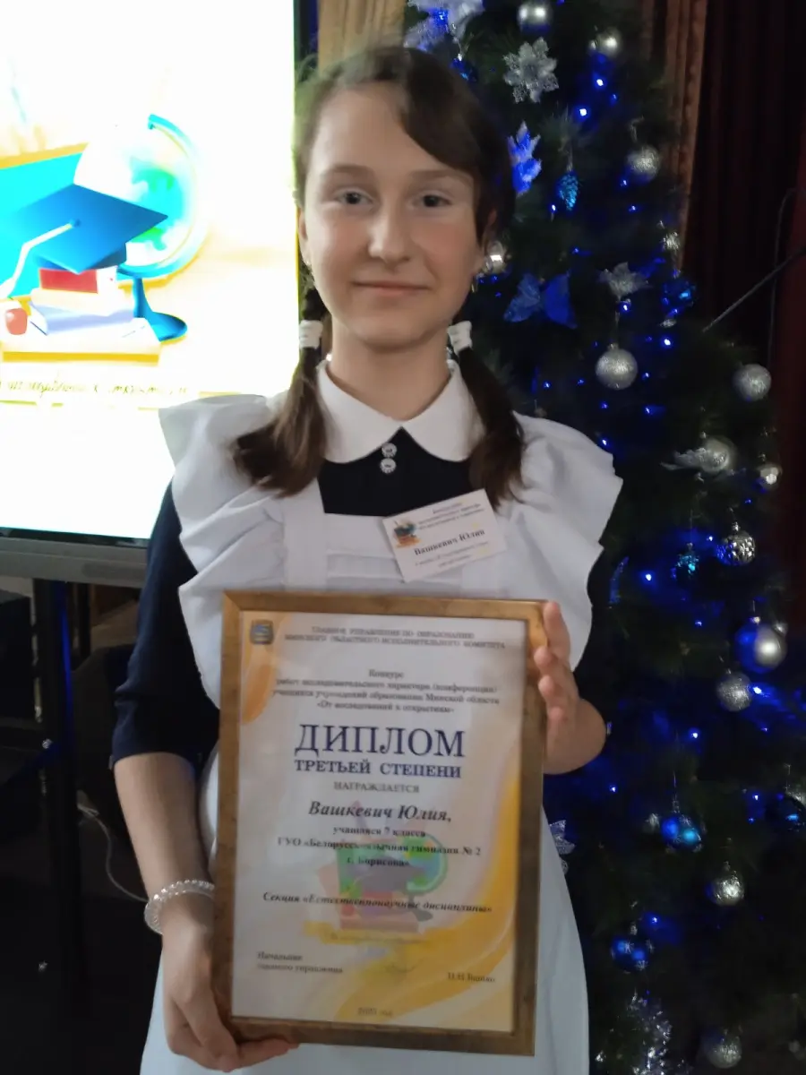 5 Естественнонаучные дисциплины Вашкевич Юлия, ГУО «Белорусскоязычная гимназия № 2 г. Борисова», - Диплом 3 степени