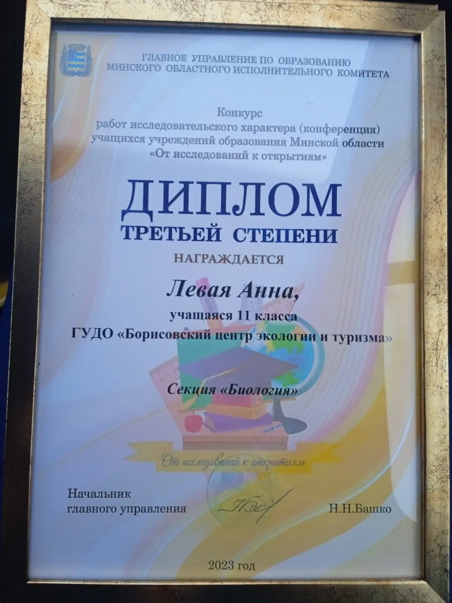 3 Биология Левая Анна, ГУДО «Борисовский центр экологии и туризма», - Диплом 3 степени
