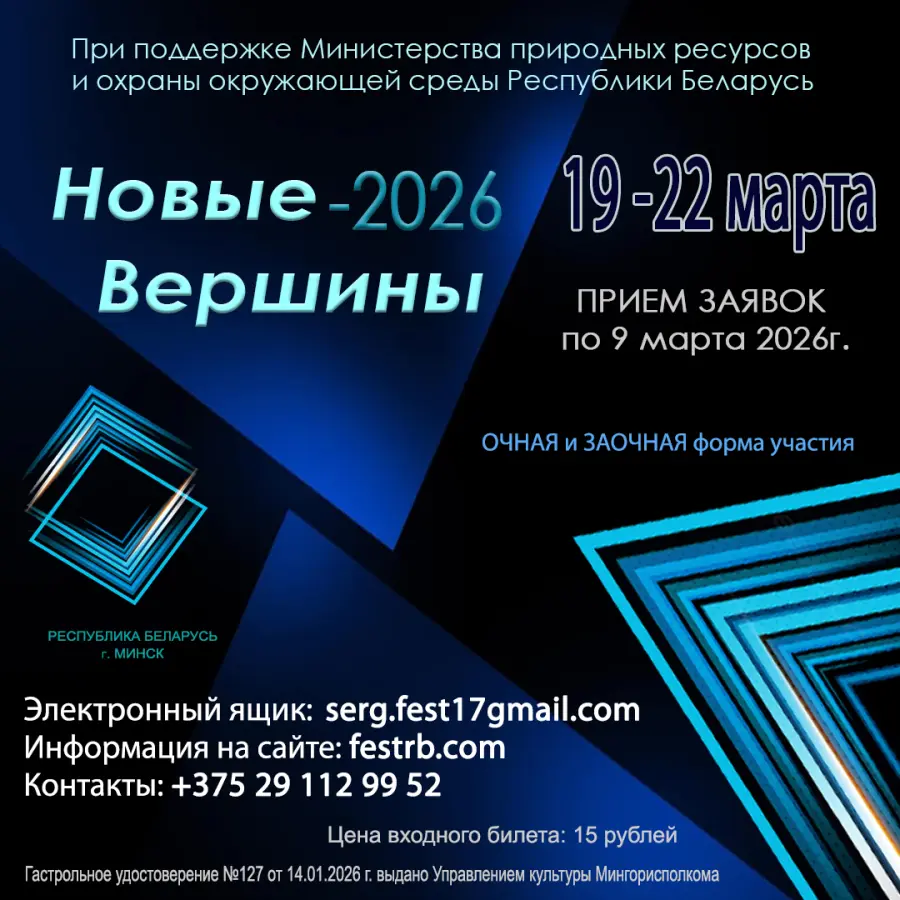 В период с 19 по 22 марта 2026 года пройдет XII Республиканский фестиваль-конкурс "НОВЫЕ ВЕРШИНЫ-2026".