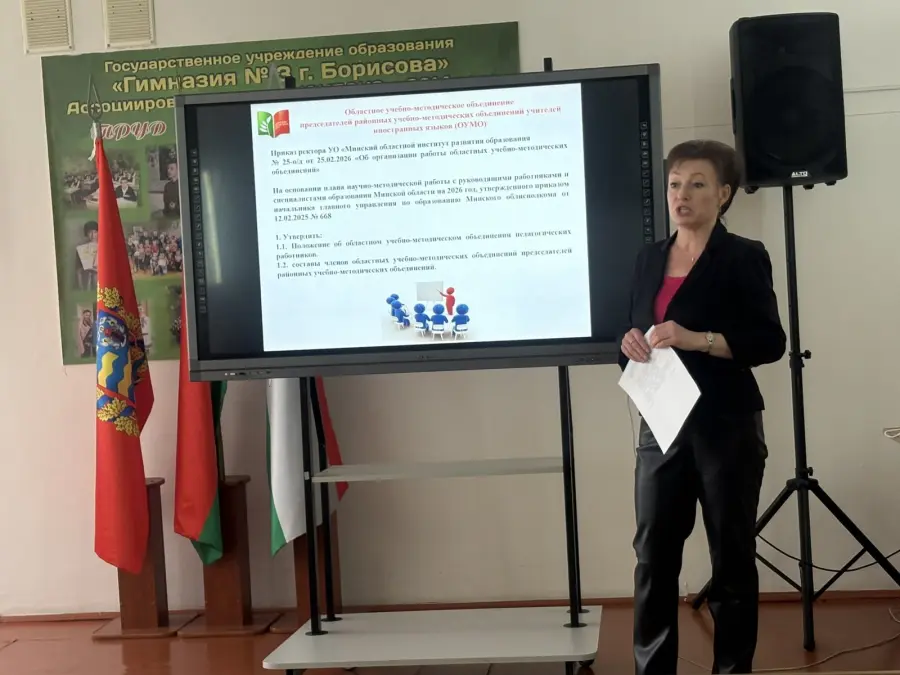 Областное учебно-методическое объединение председателей РУМО учителей иностранных языков открыла директор ГУО «Гимназия №3 г. Борисова» Кирик И.В. с презентацией опыта работы учреждения образования.