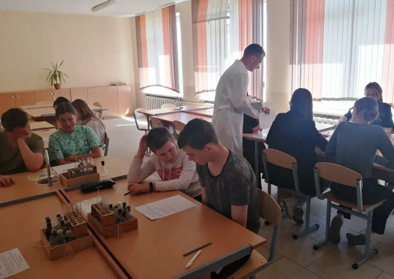 С 5 по 9 июня 2023 года под руководством педагогов ребята увлечённо постигают химические понятия, превращения, особенности химического эксперимента в ходе учебных сборов в Государственном учреждении образования «Средняя школа №8 г. Борисова».