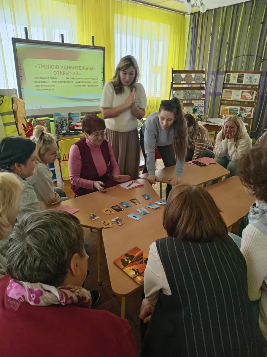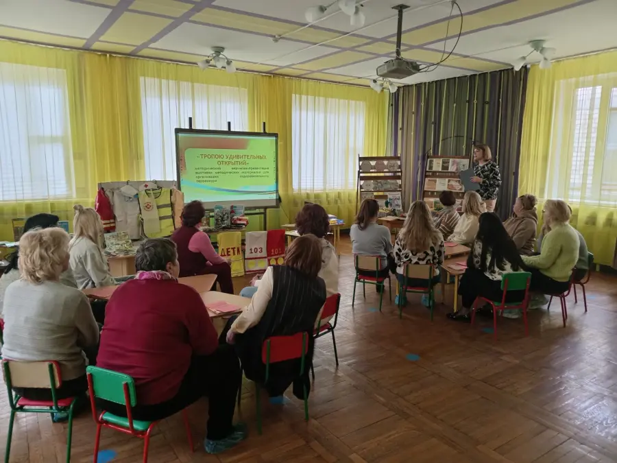Вниманию руководителей физического воспитания был представлен методический вернисаж-презентация выставки методических материалов для организации оздоровительного терренкура «Тропою удивительных открытий».