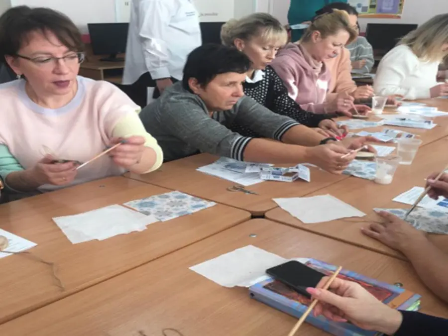 Далее участникам заседания была предложена работа в творческих группах. Под руководством воспитателя группы продленного дня Кривошеенко Ю.В. и учителя трудового обучения Царик Л.А.гости гимназии создавали сувениры в технике декупаж.